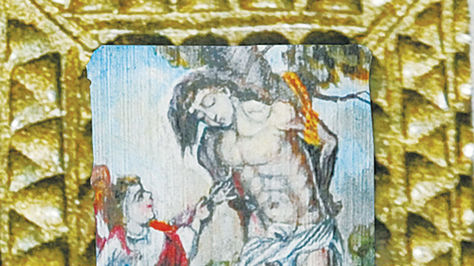 Lápiz en mano, dibuja bocetos pequeñísimos de imágenes sagradas para luego pintarlos y hacer réplicas perfectas en miniatura de cuadros barrocos.